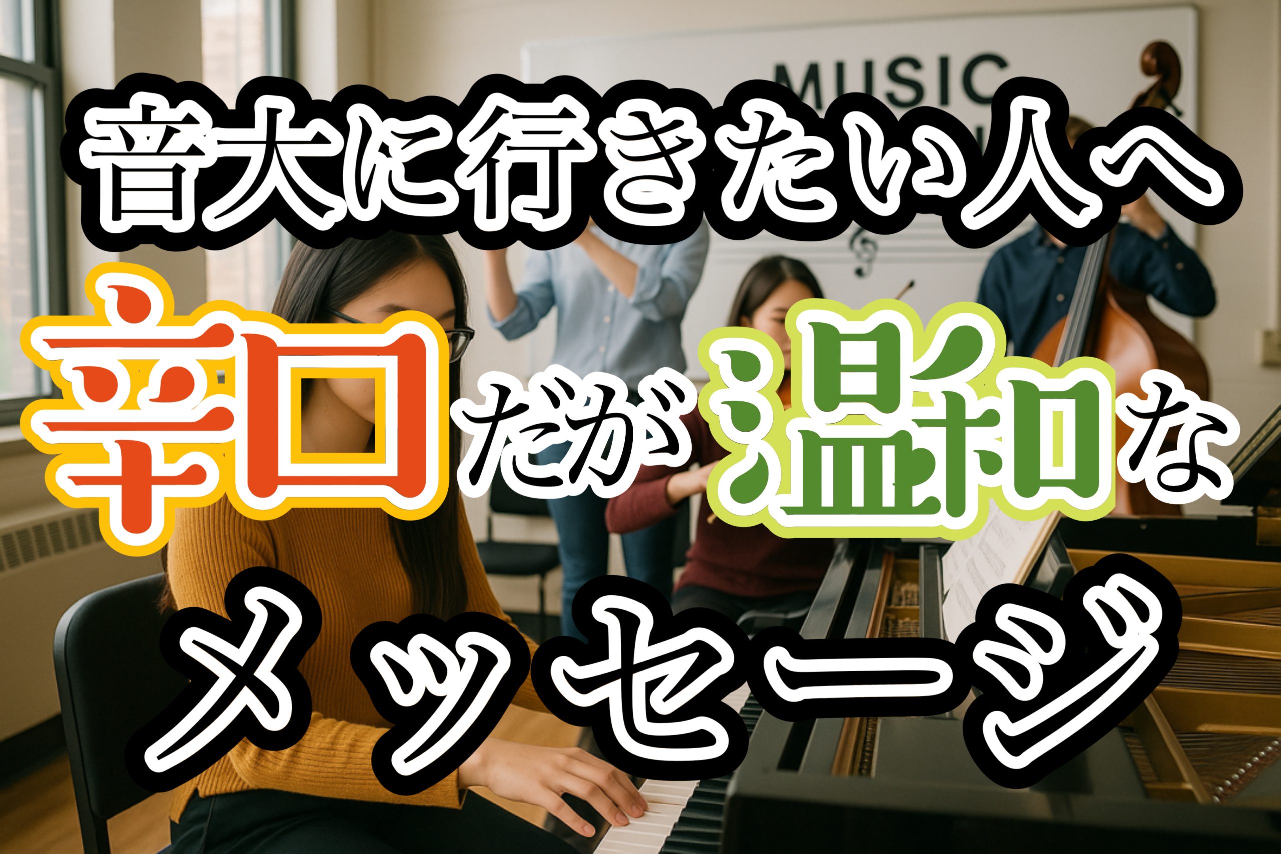 では以下、音大卒の私の現在の価値観で、音大に行きたい(=進学したい)という人や関係者に向けて、辛口メッセージを、温和な心持ちでお伝えしていこうと思います。